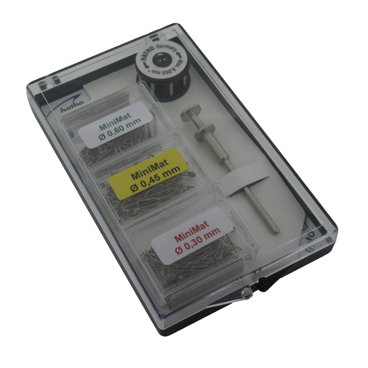 • Complete MiniMat borstelset met 3 draaddiktes en as.